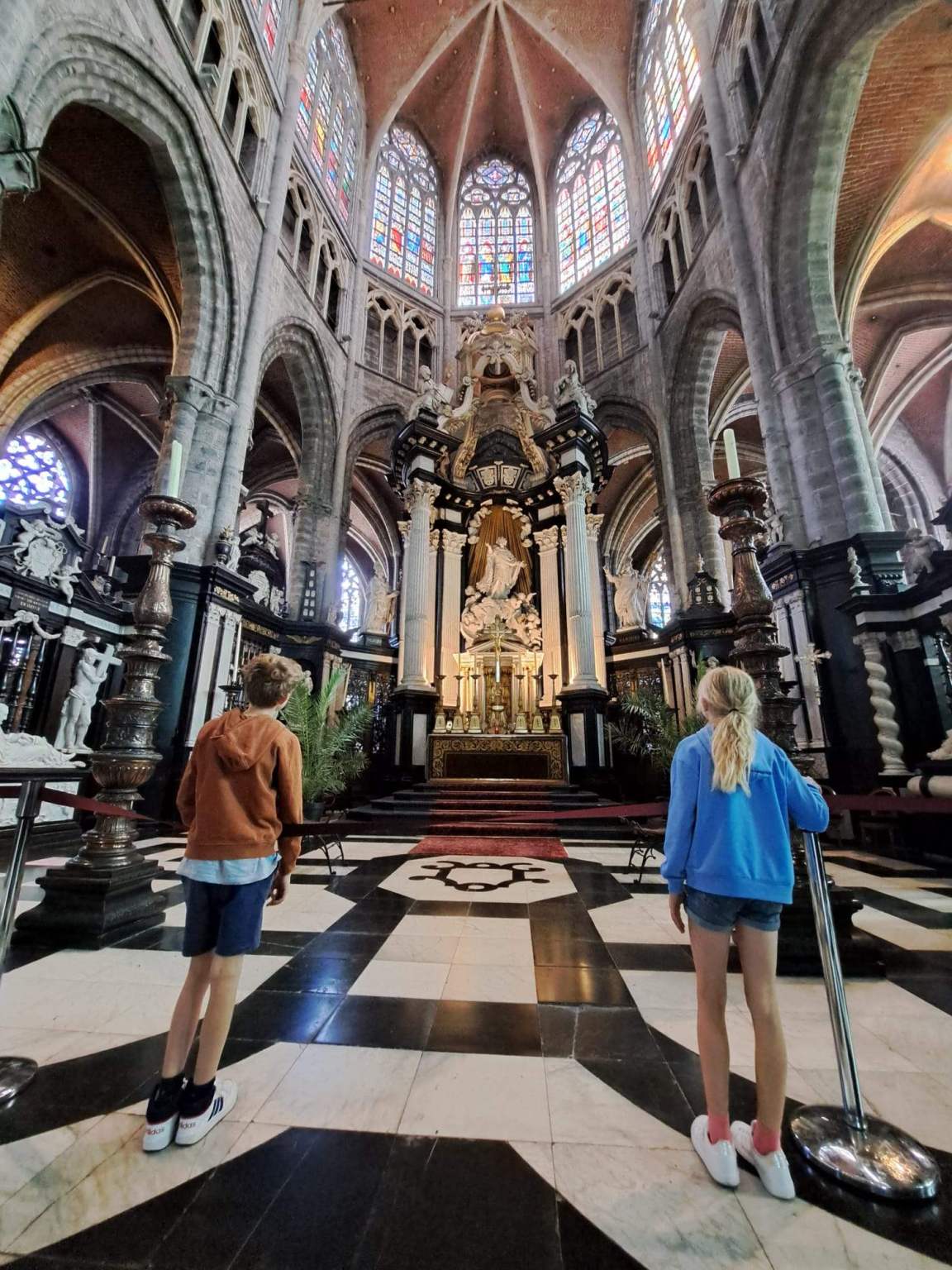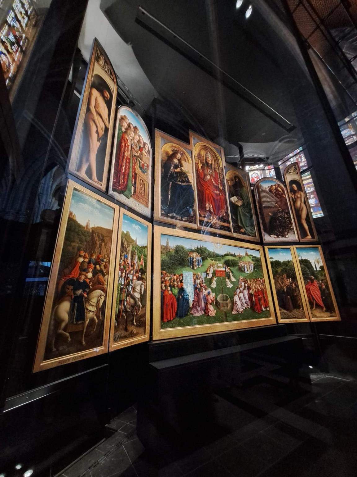 Vervolgens 350 meter doorstappen naar de Sint-Baafskathedraal, waar we het Lam Gods bezichtigden. Opnieuw pauze, deze keer 25 minuten, op een terras op het Sint-Baafsplein.